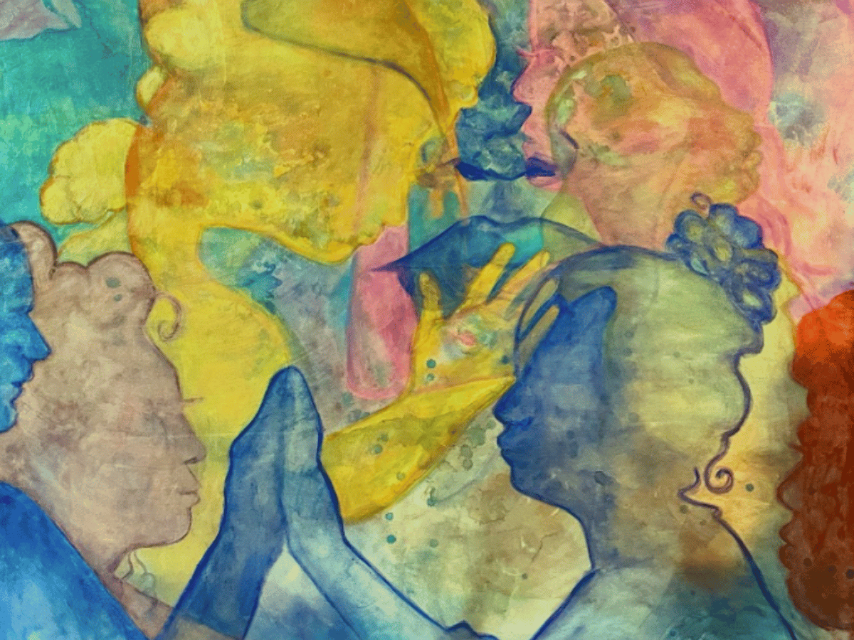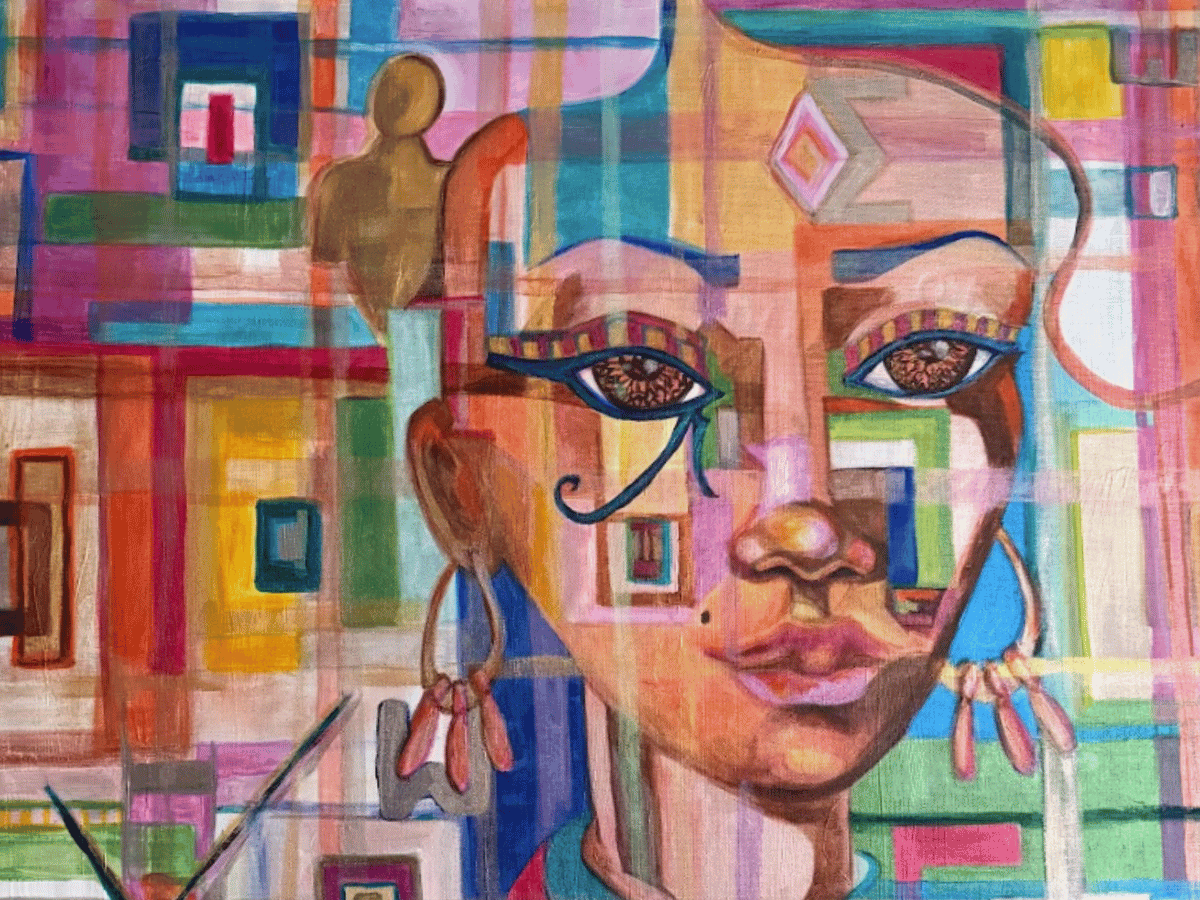 My process is layered. I build surfaces the way memory builds itself, adding paint and texture and symbol and sometimes hidden text until there is more there than you can take in at first. I want the work to reward people who stay with it. There is always something beneath the visible face, and I mean that both literally and otherwise.